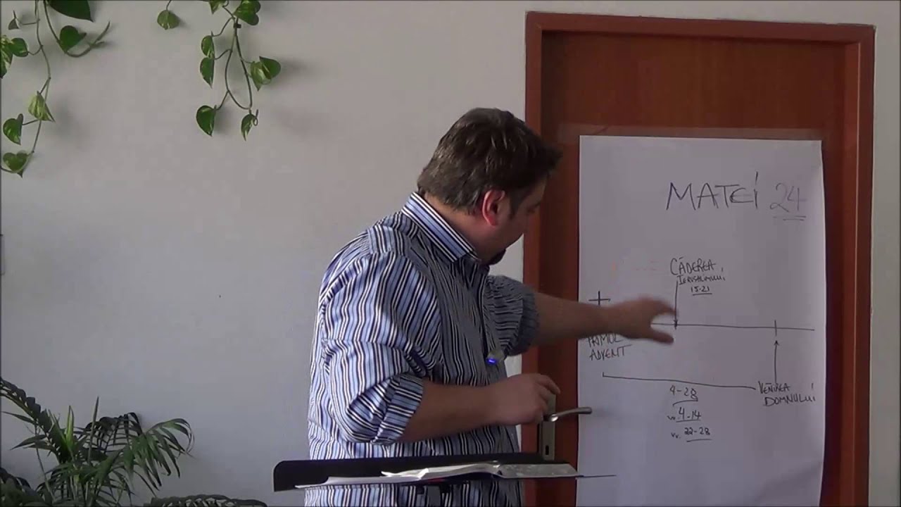 Așadar, în contextul unei discuții cu privire la dărâmarea Templului, ucenicii ridică câteva întrebări (3 la număr): Când va fi dărâmat templul? Care va fi semnul venirii? Semnul sfârșitul veacurilor? Isus abordează întrebările lor și discută de la versetul 4 la 28 despre perioada dintre adventuri. Evenimentul care îi interesează pe ei în mod explicit este Căderea Ierusalimului din anul 70 d.H., care o regăsim abordată între versetele 15-21. Acesta a fost de fapt textul la care ne-am uitat data trecută. Am spus că venirea lui Isus este iminentă și că perioada dintre adventuri, intitulată durerile nașterii, este caracterizată de semne. Semnele provin atât din domeniul fizic (vezi diverse catastrofe în care natura este implicată), cât și din domeniul spiritual. (Versetul 22 – „Dacă zilele acelea n-ar fi scurtate, nici un om n-ar scăpa” – făcând referire la această perioadă interadvent, nimeni nu ar supraviețui, „însă din pricina celor aleși zilele acelea vor fi scurtate.”) Această revenire este sigură, iar Isus oferă garanții că nu va putea nicicum să treacă neobservată: „Căci așa cum fulgerul iese de la răsărit și se vede până la apus, tot așa va fi și venirea Fiului Omului. Oriunde va fi hoitul, acolo se vor aduna și vulturii!”